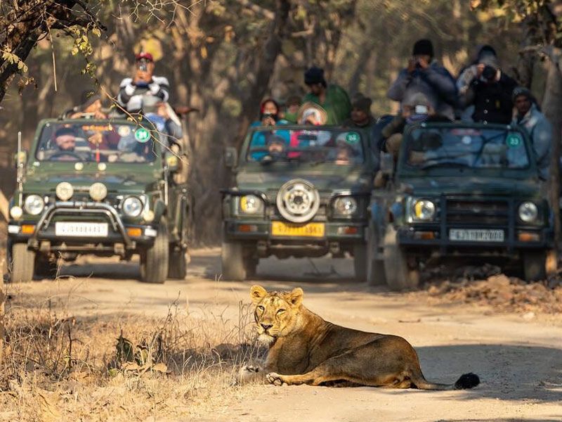 Gir National Park in Gujarat is the undisputed king of lion safaris in India. It is the only place on Earth where Asiatic lions (Panthera leo persica) roam freely outside Africa. Spanning over 1,400 square kilometers, Gir's dry deciduous forests, grasslands, and rocky hills foster a thriving lion population in harmony with other wildlife.