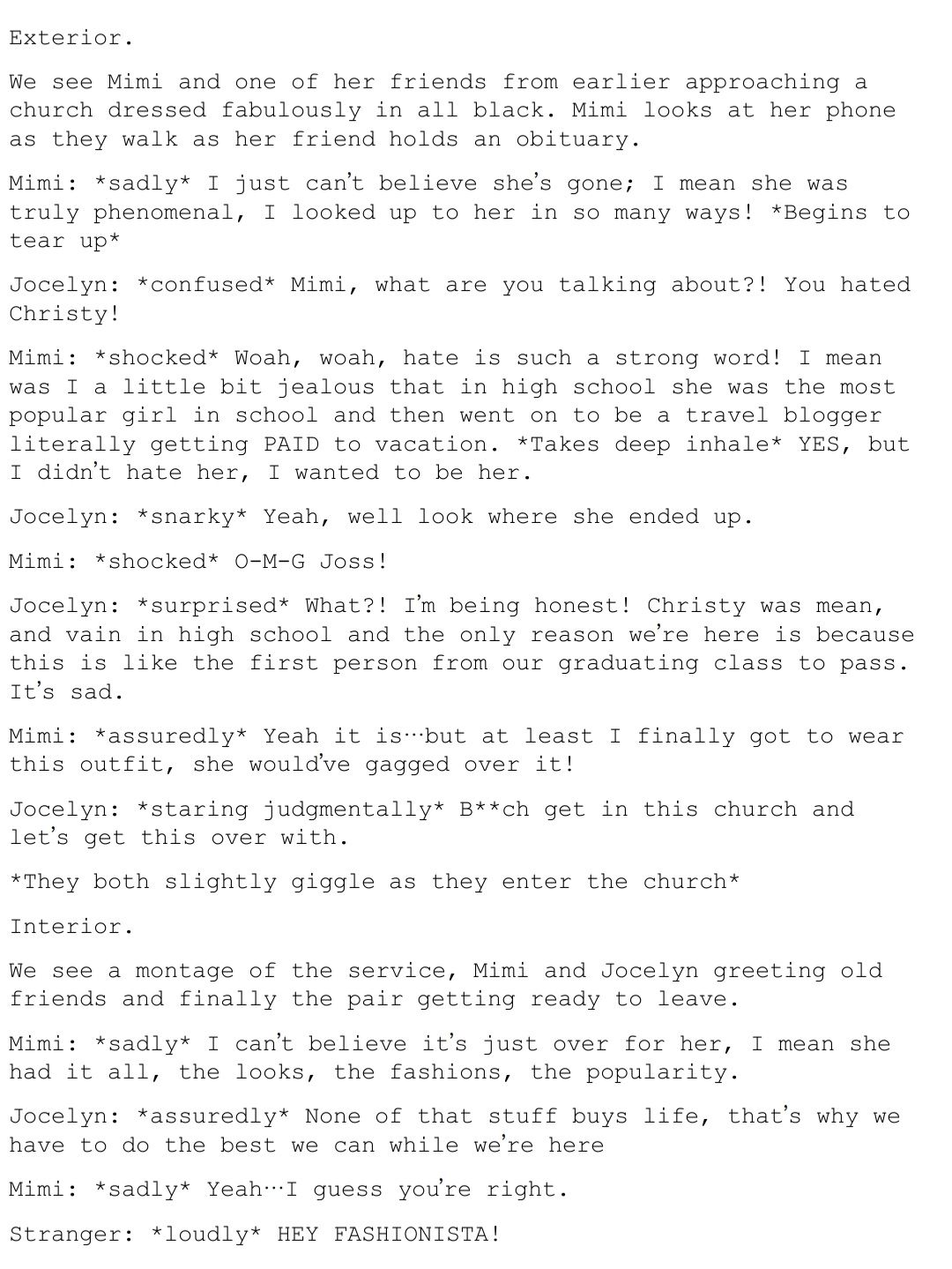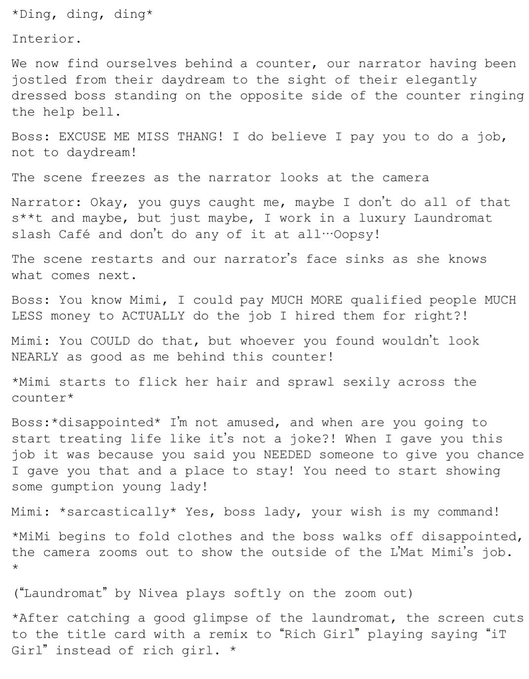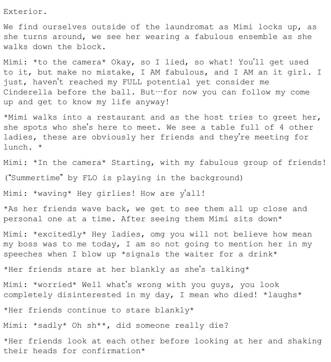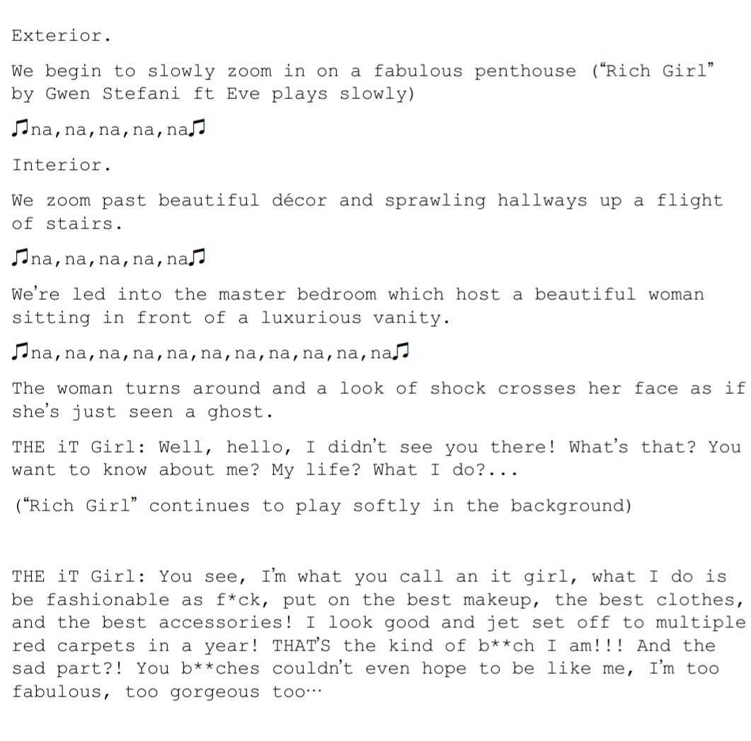 Hello there; girlies and gays, ladies and gentlemen, theys and thems! Welcome back to another episode of "The iT Girl" where I keep you thoroughly up to date on my losing battle with main character syndrome. When last I left you, you all got to experience a rare behind the scenes production meeting of my rebrand into a bonafied iT Girl! That's right, no longer am I settling for the mundane life of trying to be some functioning member of society, instead I'll just be pretty and fashionable instead! Now with that being said, every TRUE iT Girl has an origin, or like I like to refer to it, A PILOT EPISODE! Now don't be too rough on me girlies! I'm no Steven Spielberg but I did prepare a cute (like me) script for you all. So, sit back, grab your popcorn and enjoy!