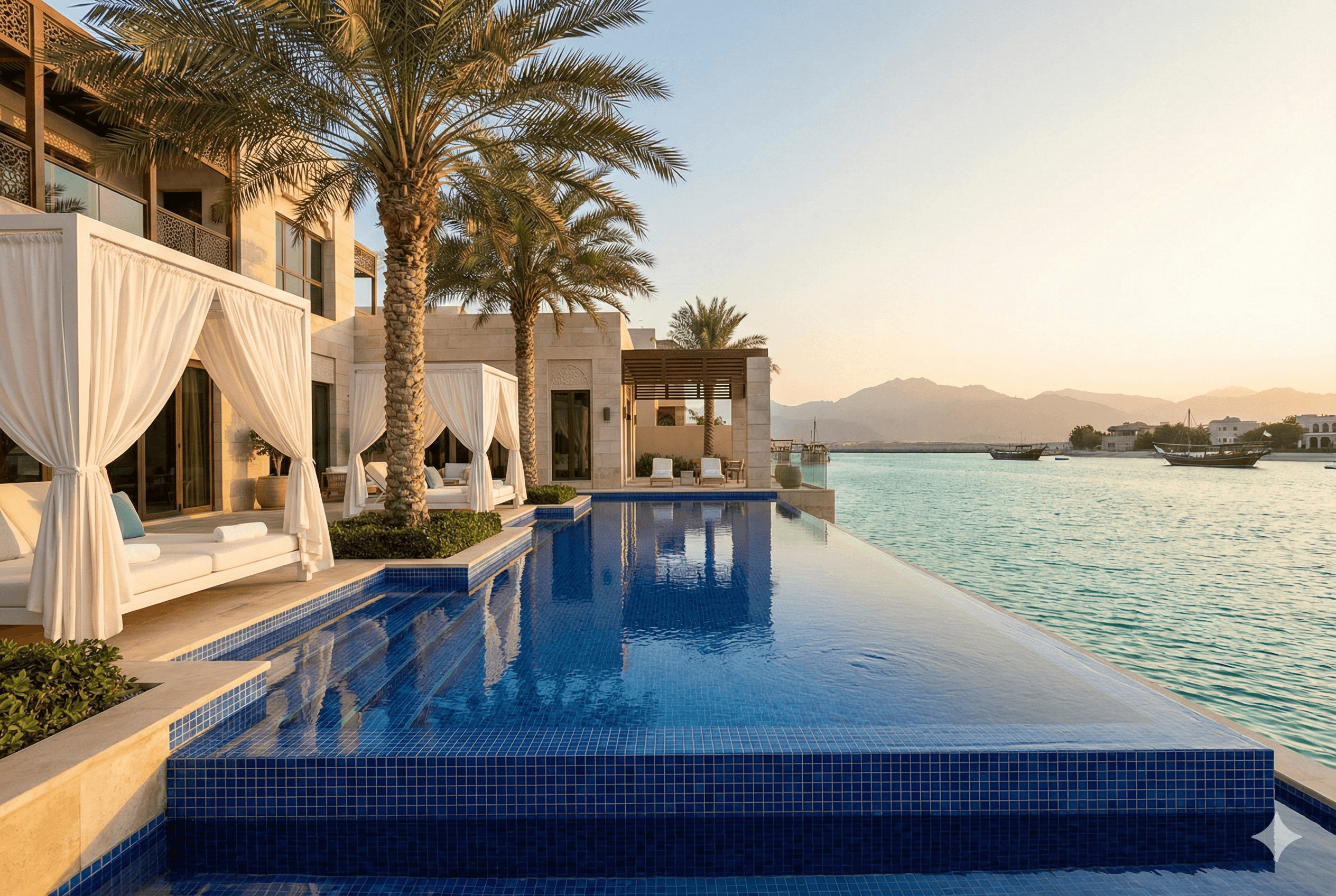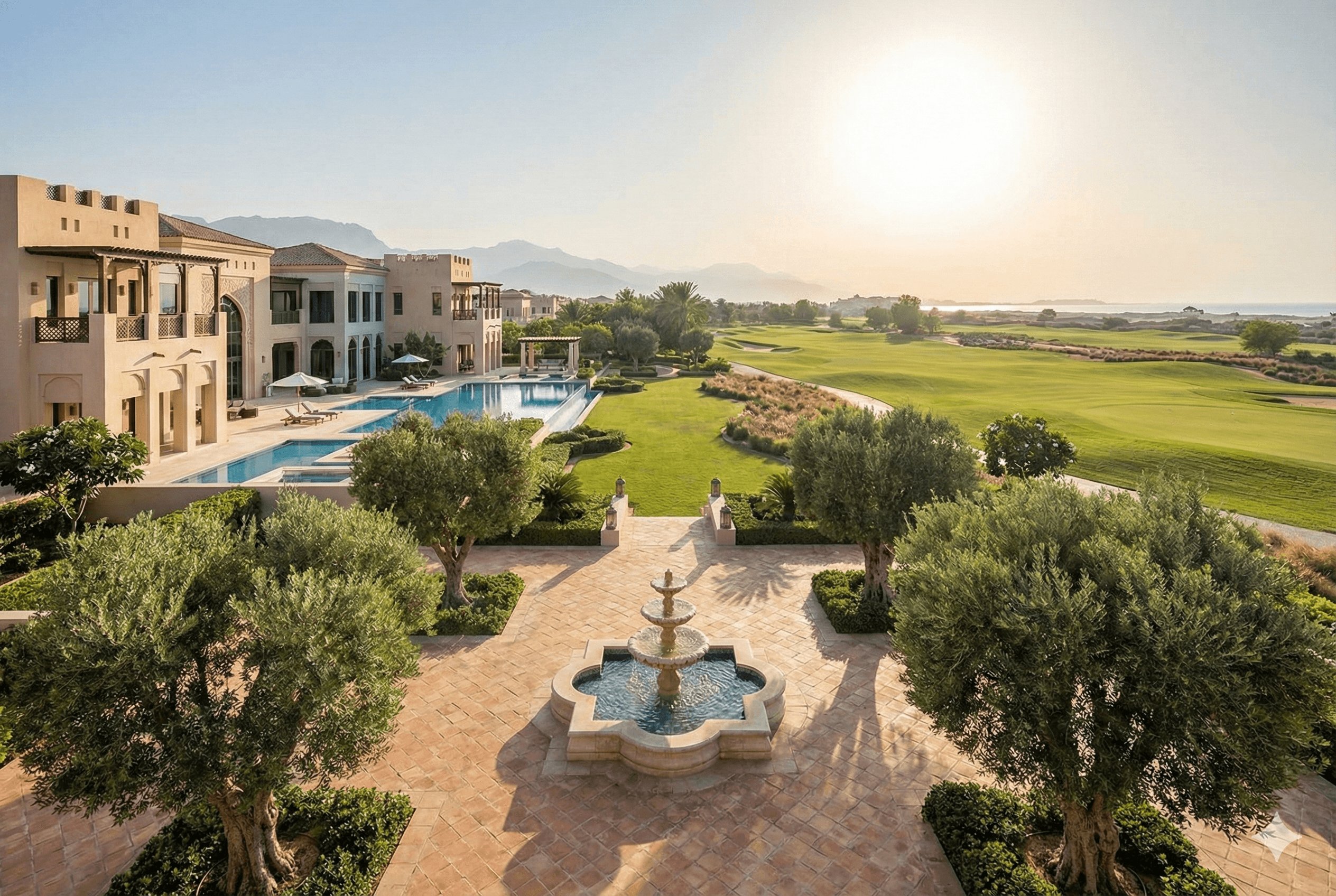 The Spanish Colonial palette feels earthy and luminous, perfect for Ras Al Khaimah’s coastal light.